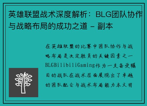 英雄联盟战术深度解析:BLG团队协作与战略布局的成功之道 - 副本